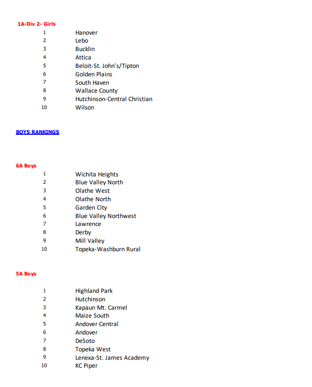On February 7th the Kansas Basketball Coaches Association announced their eighth regular season basketball rankings for each classification
