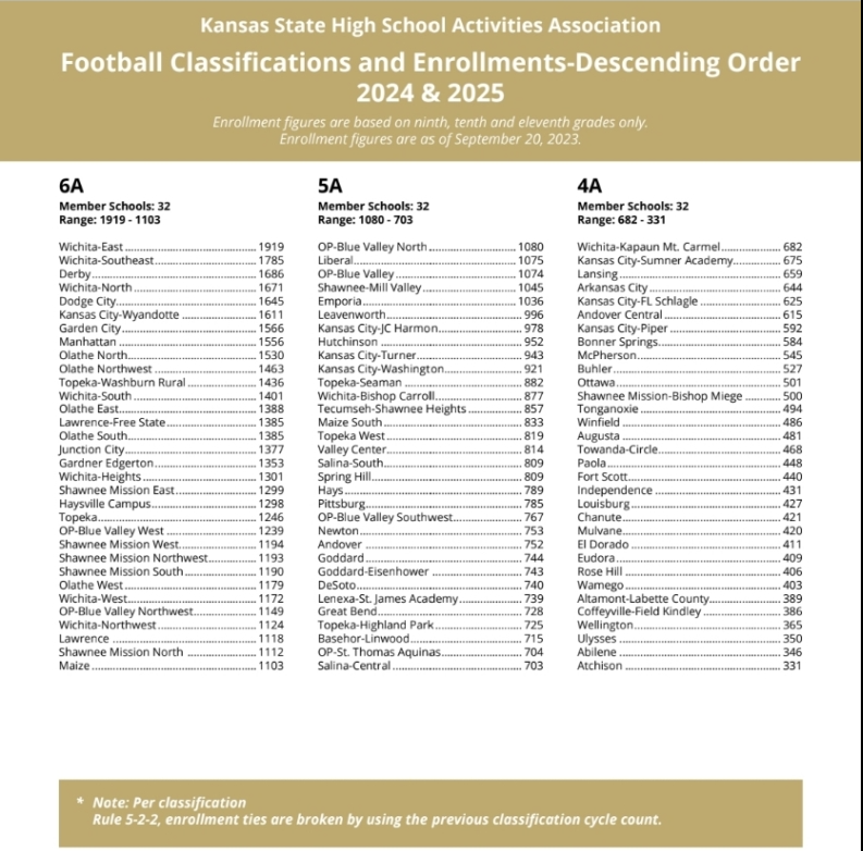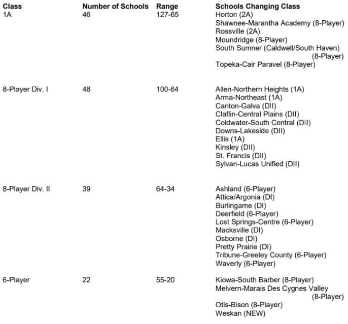 KSHSAA announces football classifications for 2024-25 KSHSAA Press Release kansaspregame@gmail.com Posted in: Features Tags: Football