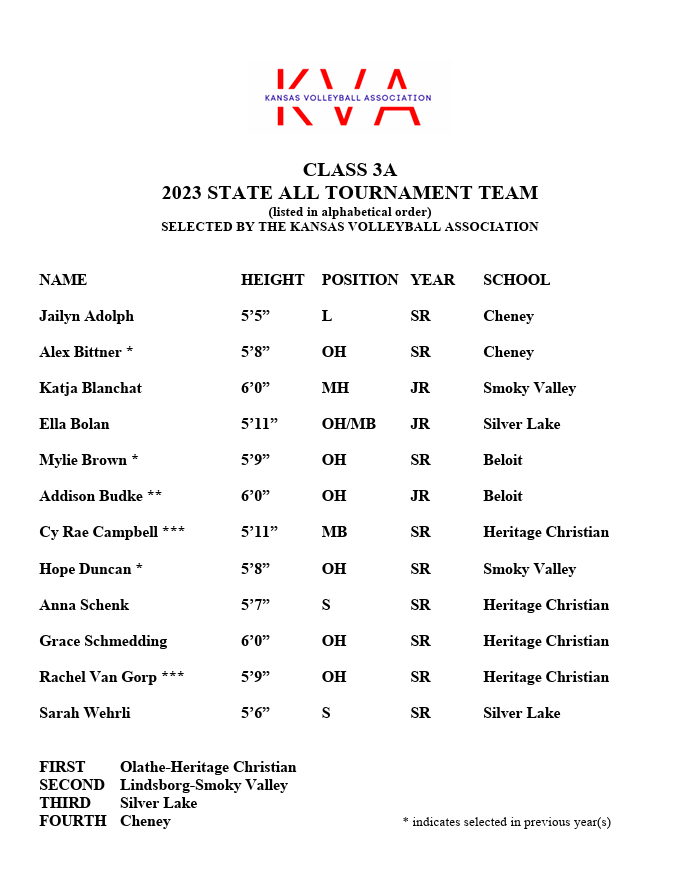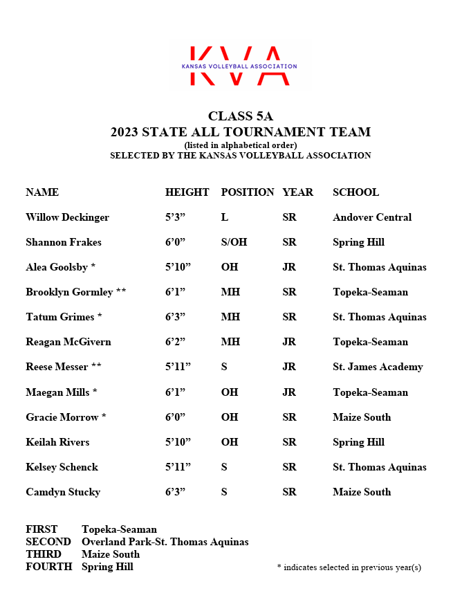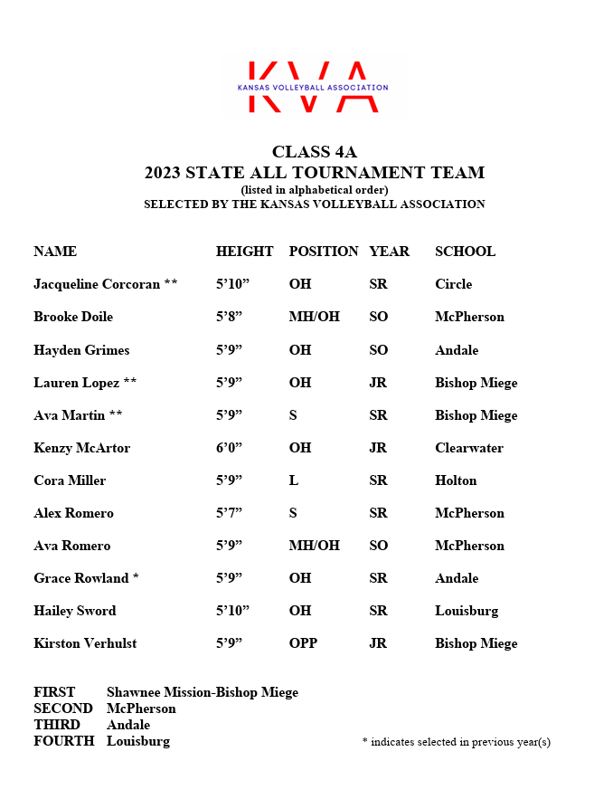KVA releases 2023 state All-Tournament teams KVA Press Release kansaspregame@gmail.com Posted in: Features Tags: Volleyball